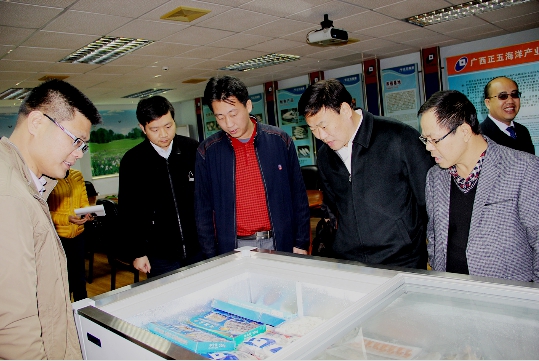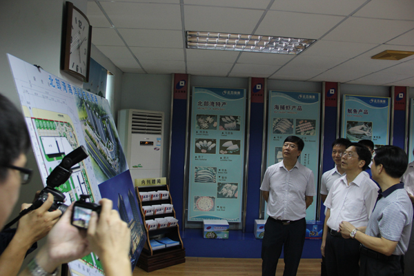 2014年12月22日,北海市委常委、副市長紀偉昕在北海高新區管委會主任李光劭陪同下到正五海產公司進行專題調研。