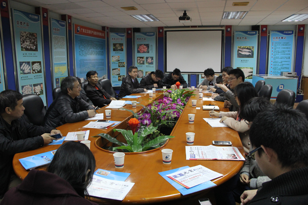 農業部南海研究所專家們一行觀看了正五海產公司宣傳片,向總經理崔小祥、源管部經理上官云山、國貿部副經理沈玉文等相關部門負責人詳細了解了海產公司在產業發展、基地建設、科技攻關等方面的工作情況。