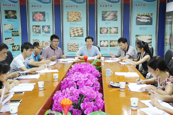 7月28日,正五海產公司在會議室召開2017年第二季度主管會議。各部門主管以上人員參加會議,會議由海產公司總經理崔小祥主持,正五集團董事長黃禮雄出席會議。