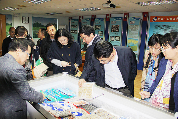 12月2日,中國海洋大學(xué)畢業(yè)生就業(yè)指導(dǎo)中心任王玉江一行6人專程來到正五海產(chǎn)公司參觀訪問。北海市委組織部、北海高新區(qū)管委會(huì)相關(guān)領(lǐng)導(dǎo)陪同,公司副總經(jīng)理霍波、榮培彥參加了座談交流會(huì)。
